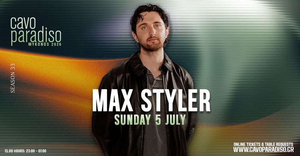 Ο Max Styler αποτελεί μία από τις πιο δυναμικά ανερχόμενες παρουσίες στη διεθνή house και techno σκηνή, γνωστός για τα δυνατά grooves, τα σκοτεινά melodic στοιχεία και τα υψηλής ενέργειας sets που κατακτούν dancefloors σε όλο τον κόσμο. Με κυκλοφορίες σε κορυφαία labels της electronic μουσικής και υποστήριξη από μεγάλα ονόματα της σκηνής, έχει χτίσει γρήγορα τη φήμη ενός από τους πιο exciting καλλιτέχνες της νέας γενιάς, φέρνοντας τον χαρακτηριστικό του ήχο στο θρυλικό Cavo Paradiso.