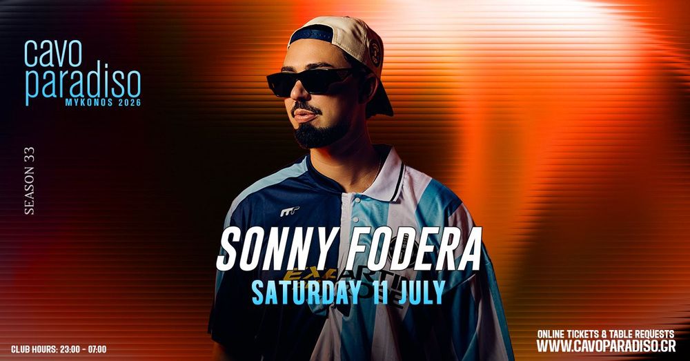 Ο Sonny Fodera είναι ένας από τους πιο επιδραστικούς καλλιτέχνες της σύγχρονης house σκηνής, γνωστός για τα groove-driven productions και τα εκρηκτικά DJ sets που έχουν κατακτήσει clubs και φεστιβάλ σε όλο τον κόσμο. Με πολυάριθμες επιτυχίες, εκατομμύρια streams και κυκλοφορίες σε κορυφαία labels της electronic μουσικής, έχει καθιερωθεί ως ένα από τα πιο αναγνωρίσιμα ονόματα της παγκόσμιας dance σκηνής, φέρνοντας τον χαρακτηριστικό του ήχο στο εμβληματικό Cavo Paradiso.